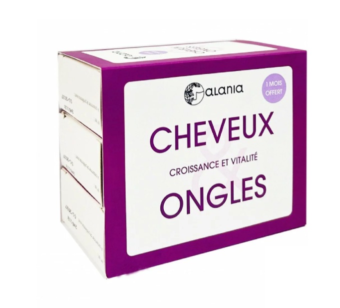 ALANIA CHEVEUX ET ONGLES CROISSANCE ET VITALITE un complément alimentaire en gélules spécialement conçu pour soutenir la santé et la beauté de vos cheveux et de vos ongles. Chacune des 30 gélules renferme une formule riche en nutriments essentiels pour favoriser une croissance saine et une vitalité éclatante.