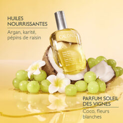 | Le saviez-vous ? | Grâce à son alliance de 7 huiles nourrissantes, l’Huile de Soin Soleil des Vignes améliore l’élasticité de la peau et l’illumine instantanément, sans effet gras. |