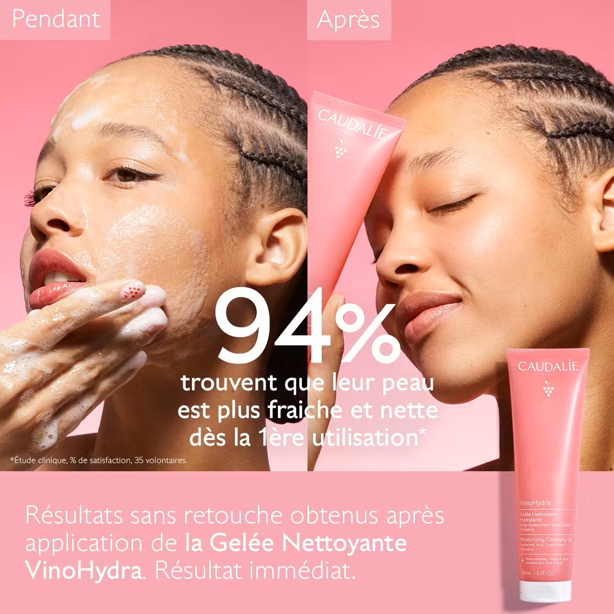 | Résultats visibles | 94% des personnes trouvent que la peau est fraîche, nette et débarrassée de toutes les impuretés (traces de maquillage, poussière) dès la 1ère utilisation* |