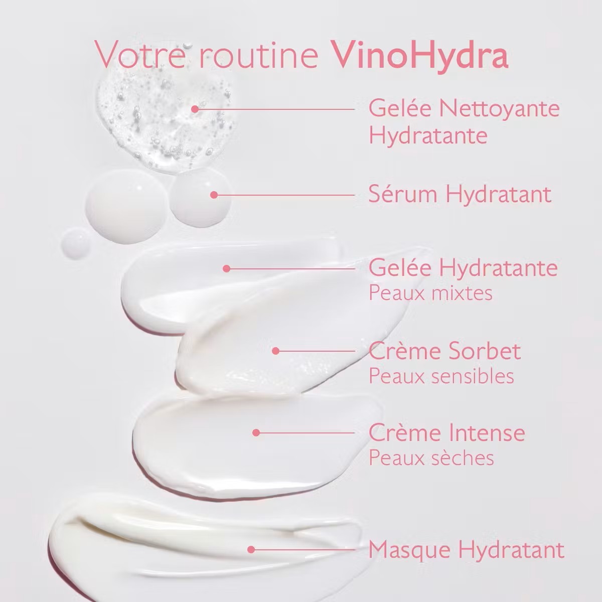 | conseils d’application | Appliquez la Gelée Nettoyante Hydratante VinoHydra matin et soir sur peau humide. Massez délicatement sur l’ensemble du visage et des yeux jusqu’à l’obtention d’une fine mousse. Rincez à l’eau. |