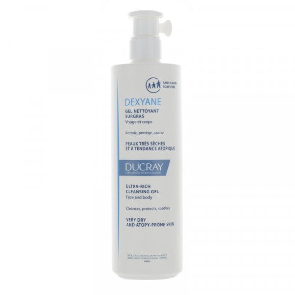 Le gel nettoyant surgras Dexyane de chez Ducray est un nettoyant qui peut être utilisé à la fois sur le visage et sur le corps. Il participe à l’hygiène quotidienne des peaux très sèches et à tendance atopique.