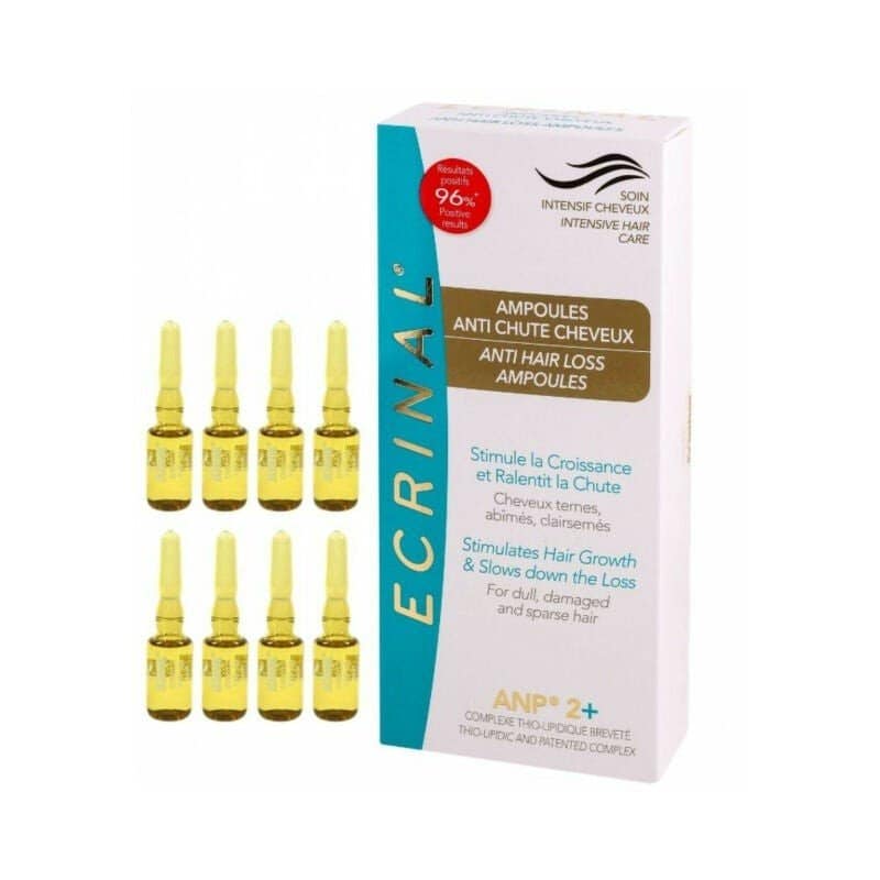 Ampoules ANP 2+ anti-chute Ecrinal se présente sous la forme d’une boîte de 8 ampoules de 5 ml.
