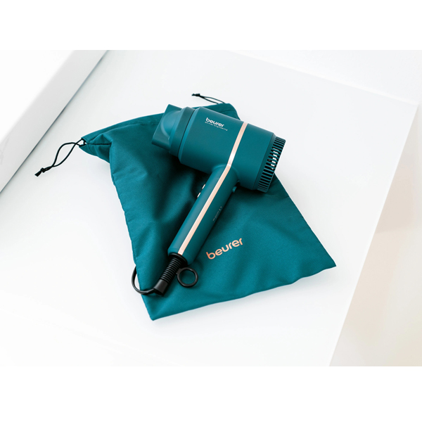 Ce sèche-cheveux compact séduit par son design moderne et s’adapte à toutes les salles de bain. Le sac de rangement pratique permet de ranger rapidement le sèche-cheveux dans l’armoire ou le sac de voyage.