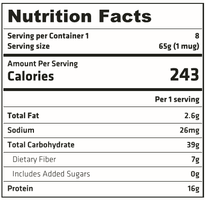 Analyse nutritionnelle pour 1 portion de 65g