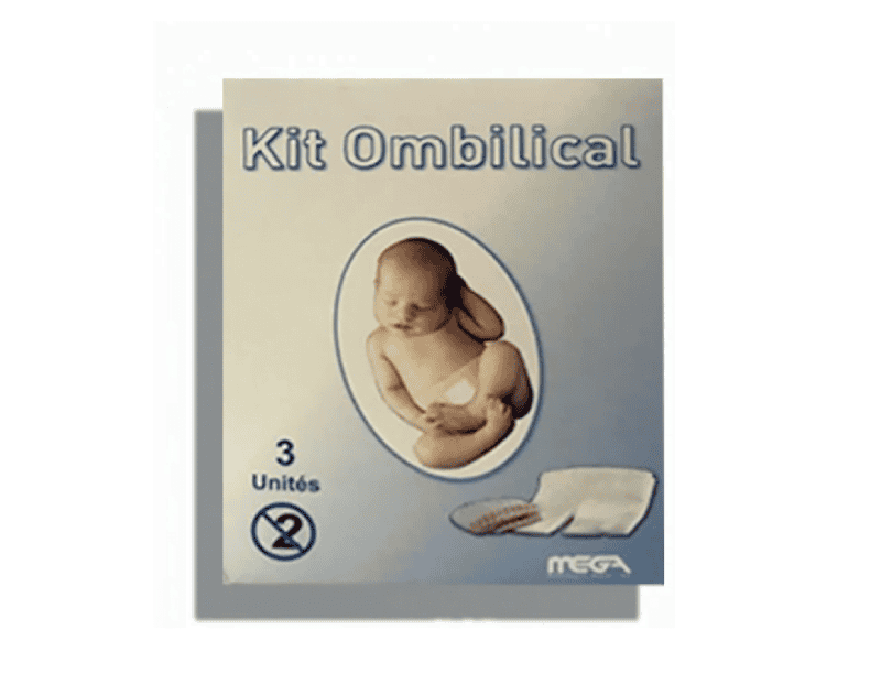 MEGA Kit Ombilical pour les soins du nombril de bébé à la naissance, confortable, hygiénique et pratique et est composé de 3 compresses stériles coton, 3 filets maintien tubulaire extensibles non stériles