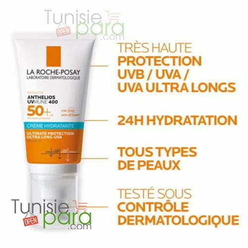 LA ROCHE POSAY ANTHELIOS UVMUNE 400 Crème Hydratante Teintée SPF50+ combine une protection solaire avancée à un soin hydratant teinté. Elle offre une très haute protection contre les UVA, UVB et UVA ultra-longs tout en unifiant le teint, idéale pour tous les types de peau et phototypes.