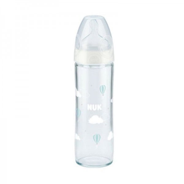 NUK first choice biberon en verre 0-6M BLEU 240 ml