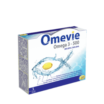 - Omevie Omega 3-500 est un complément alimentaire qui contribue au bon fonctionnement cardiaque, du cerveau et de la vision.