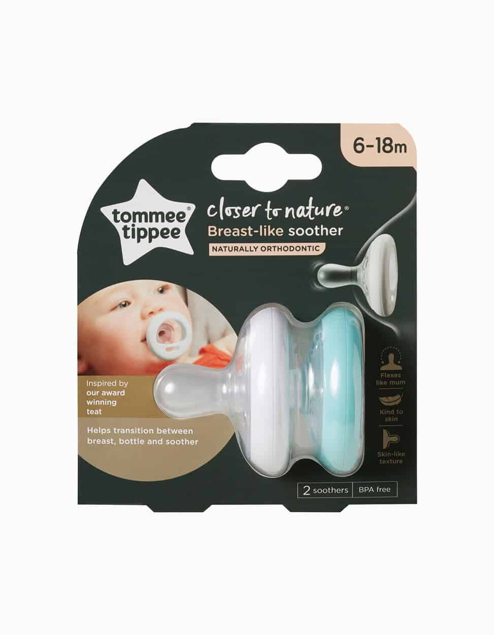 Cette sucette TOMMEE TIPPEE possède une forme très similaire au sein maternel afin de favoriser la transition pour bébé entre le sein, sucette et biberon.
