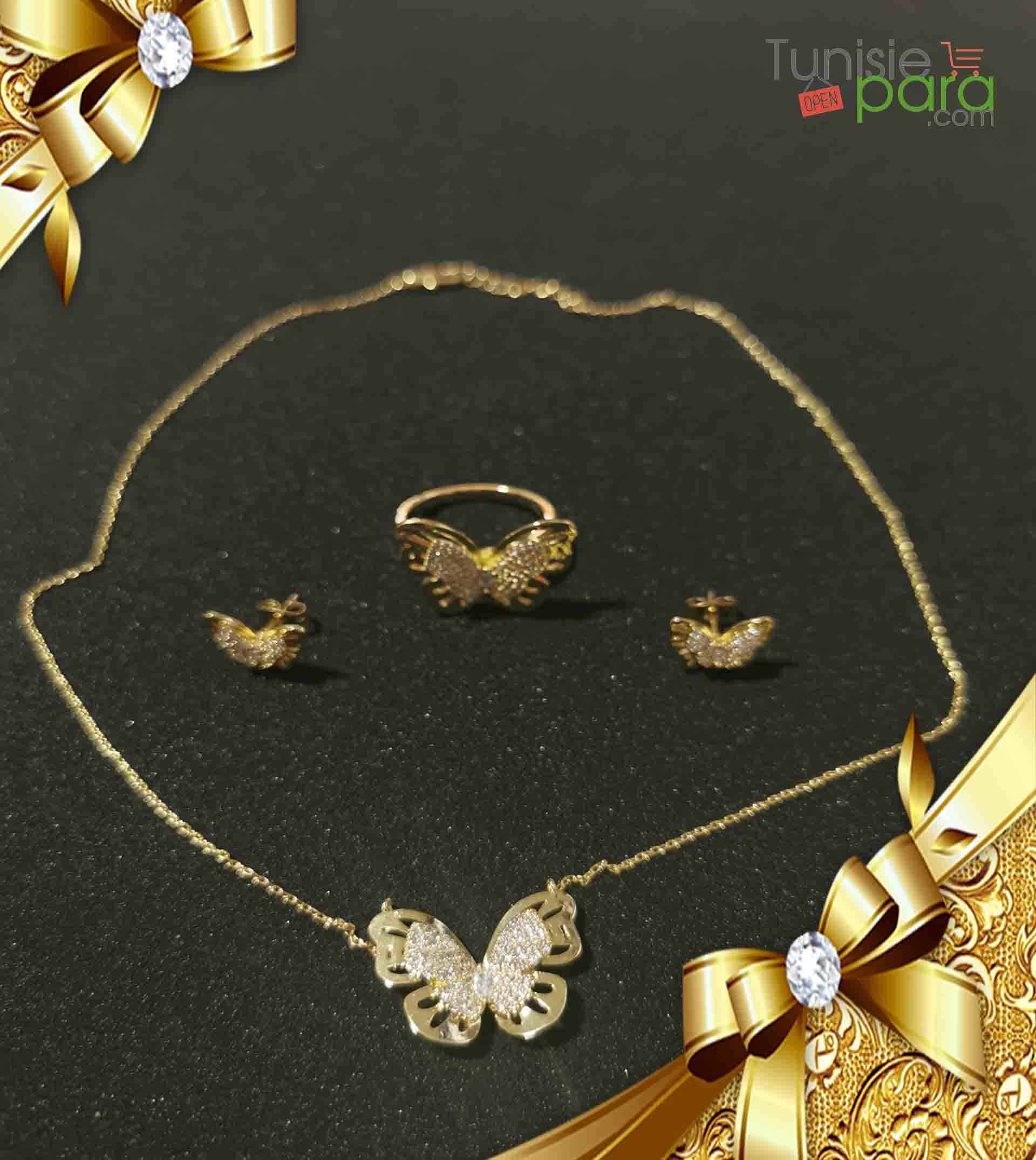 Tunisiepara collier+bracelet hypoallergénique plaqué OR (مغطس في الذهب):