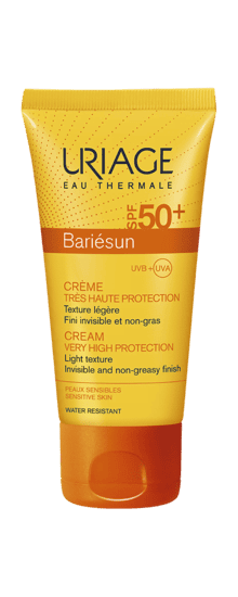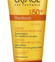 La Crème SPF50+ Bariésun d’Uriage apporte une très haute protection contre les UVA, les UVB, les radicaux libres et prévient du dessèchement cutané grâce à un complexe filtrant ultra-performant. Sa texture est légère et fluide, non grasse et agréablement parfumée. Elle est dotée d’une grande tolérance et pénètre rapidement.