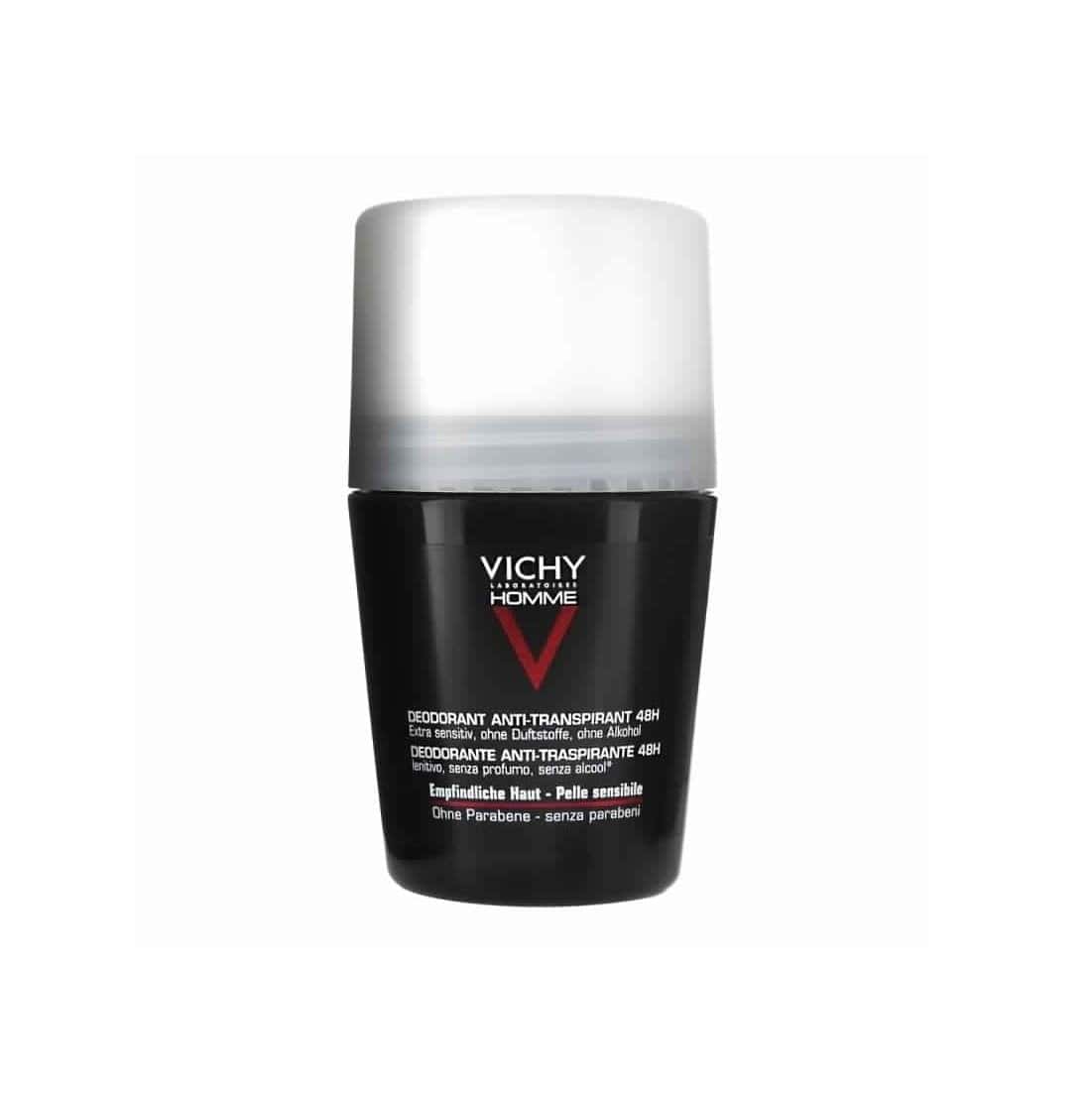 Le Déodorant Anti-Transpirant 72h Contrôle Extrême Vichy Homme procure une sensation immédiate de fraîcheur et apporte une efficacité pendant 72h, régule la transpiration excessive sans bloquer son processus naturel. Sans alcool.Vichy Homme Déodorant Contrôle Extrême 72h Roll-On est un déodorant riche en actifs anti-transpirants et minéraux ultra-absorbants qui régule efficacement la transpiration et l’humidité pendant 72 heures.