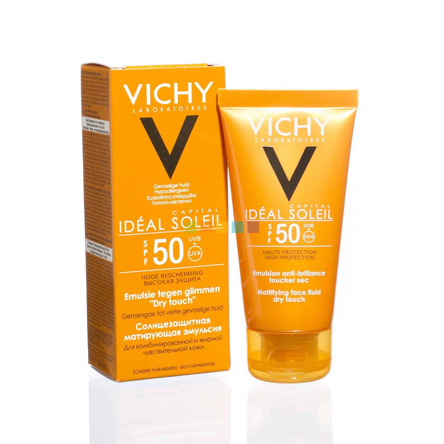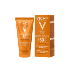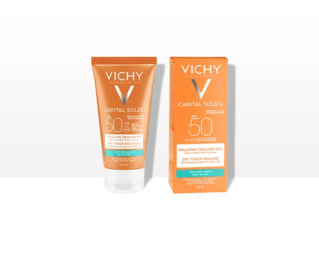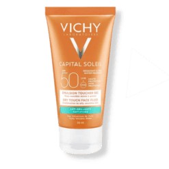 Avec une texture parfumée unique et résistante à l’eau l’émultion ideal soleil de Vichy offre un fini au toucher sec et doux anti-brillance.