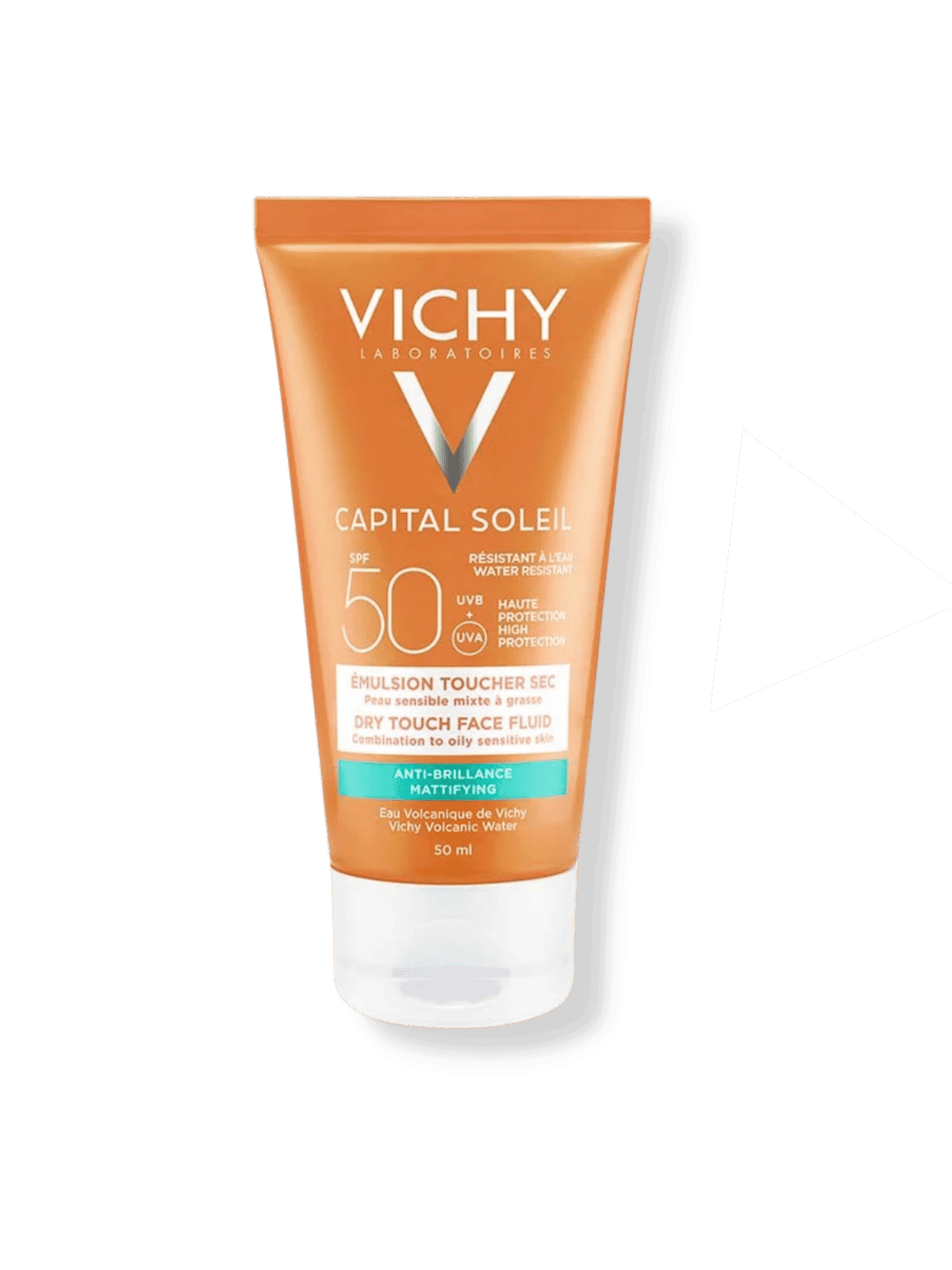 Le premier soin solaire SPF 50 au toucher sec durable sans aucune brillance.