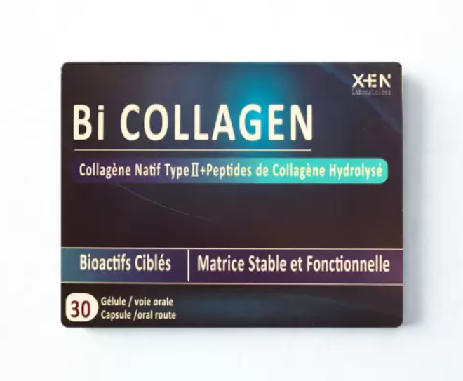 BI COLLAGEN est un complément alimentaire à base d’une association de collagène natif type II et de collagène marin hydrolysé, recommandé pour le Soulagement de la douleur et de la gène fonctionnelle au cours de L’arthrose du genou et de la hanche.